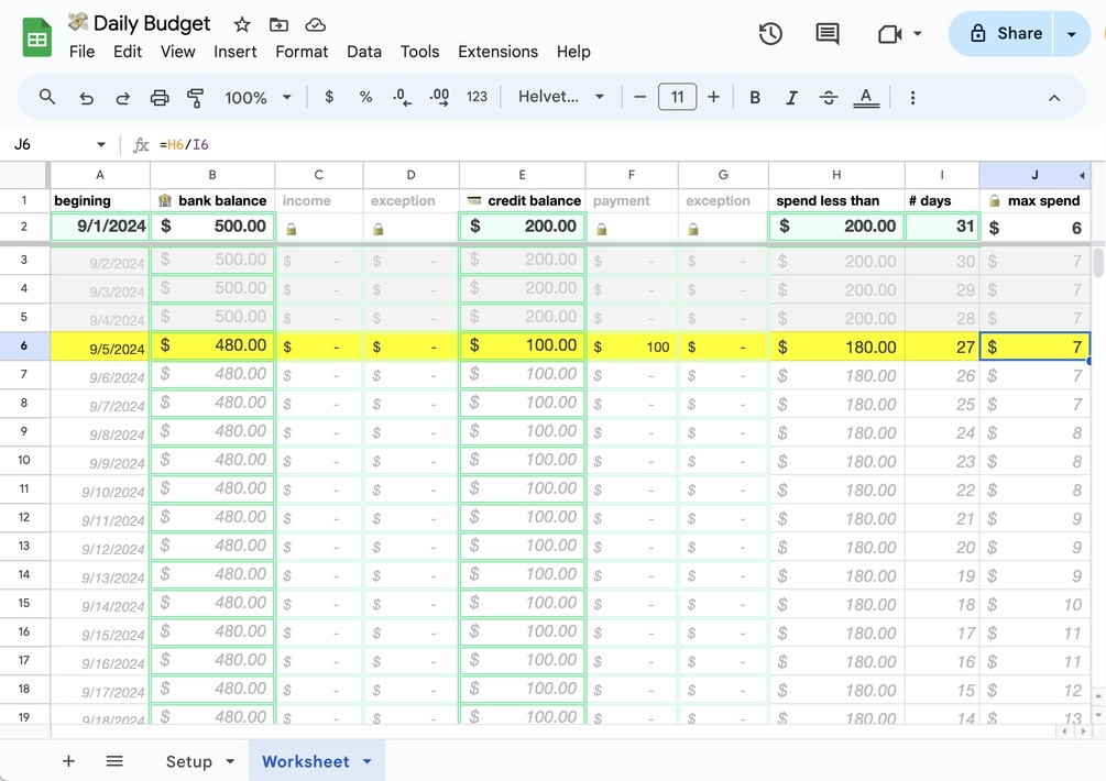 Daily Budget Personal Finance Template